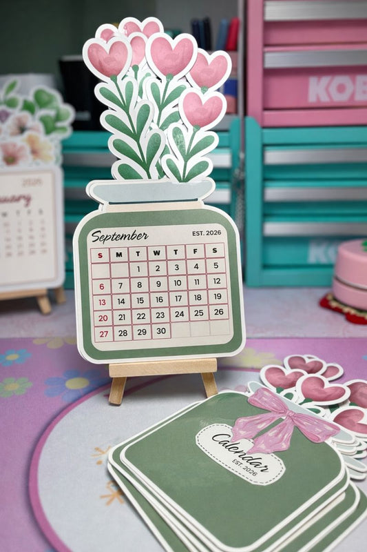 Valentine Stacked Desk Calendar | 5x11 Standing Floral Calendar with Wooden Easel