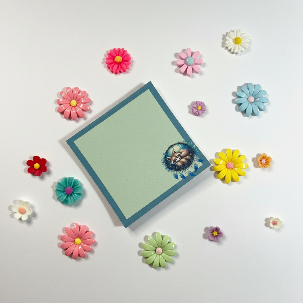 Bring a little calm curiosity to your daily reminders with the Dream Weaver Raccoon Sticky Notes. Featuring a peacefully curled raccoon nestled within a dream catcher, these notes are perfect for gentle reminders, thoughtful messages, and moments of creative pause. Whimsical and soothing, they add a touch of magic to any desk or planner.