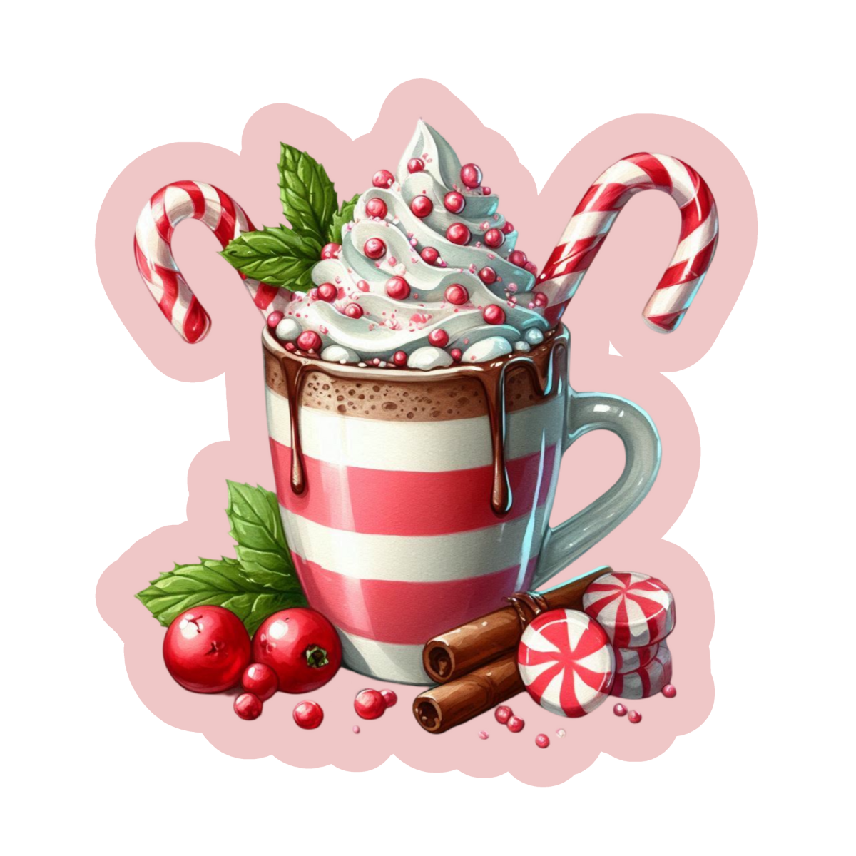 Decorate planners, journals, and gifts with the Hot Cocoa sticker, inspired by peppermint cocoa and Christmas comfort. A fun and festive way to add seasonal charm to stationery, happy mail, or holiday packaging.