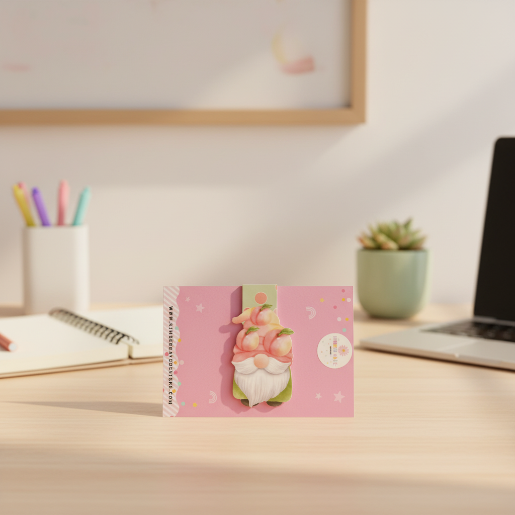 This magnetic bookmark securely clips to your page while adding a pop of fruity gnome charm. A practical and adorable accessory for readers and planners alike.