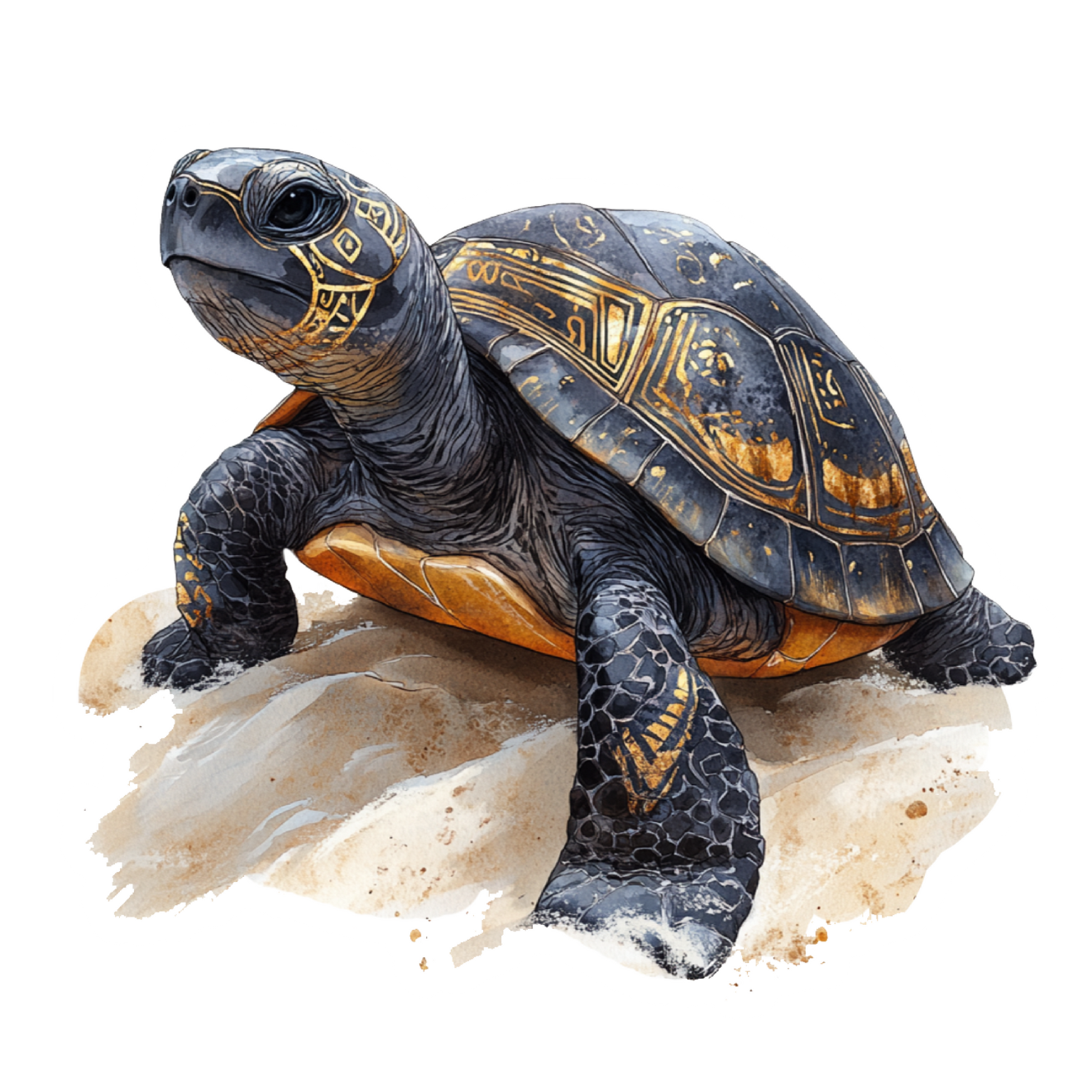 Featuring a thoughtfully illustrated turtle with intricate golden accents, this design brings a calm, grounded feel inspired by nature.